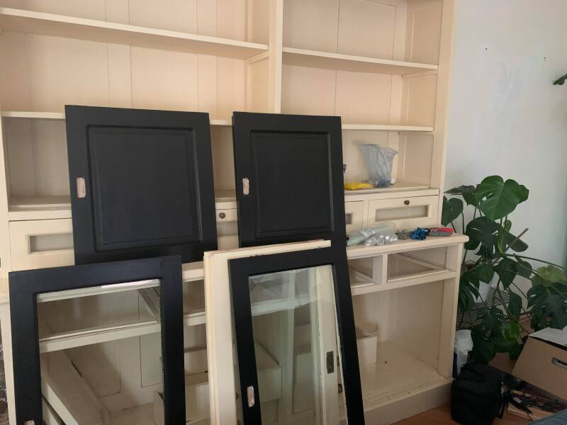 Ondertussen schilder ik tussen de bedrijven door steeds een stukje kast. En dat zijn best veel stukjes.