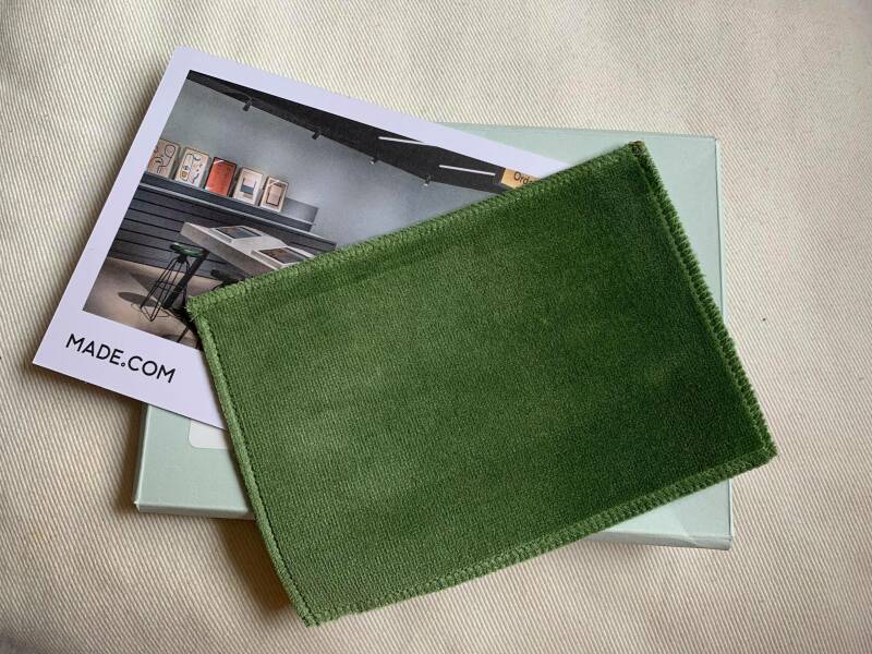 Die bank. Die ik in een online winkel heb gespot. Die gaat niet meer uit mijn hoofd. We hebben ondertussen al op verschillende banken gezeten in verschillende winkels. Online blijf ik zoeken maar er is er geen een die deze bank uit mijn hoofd haalt. Ik kreeg vandaag een stukje van de bank binnen. Een stof-staaltje. En nu wil ik hem helemaal. Ik ben dol op de kleur!