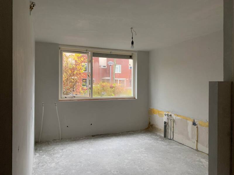 Mijn anti-klus man is zelfs onder de grond gekropen om met behulp van onze buurman met gouden handjes de waterleiding te verleggen. Ze hebben een top-klus geleverd en ik ben trots! De verwarming is van het plafond (ja echt, hij hing hoog aan de muur) naar een fijne plek aan de muur verhuisd. Er moesten wel wat leidingen de muur in maar de stuuker heeft dat prachtig weg gewerkt.