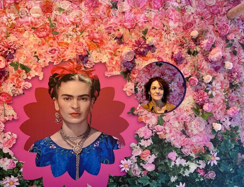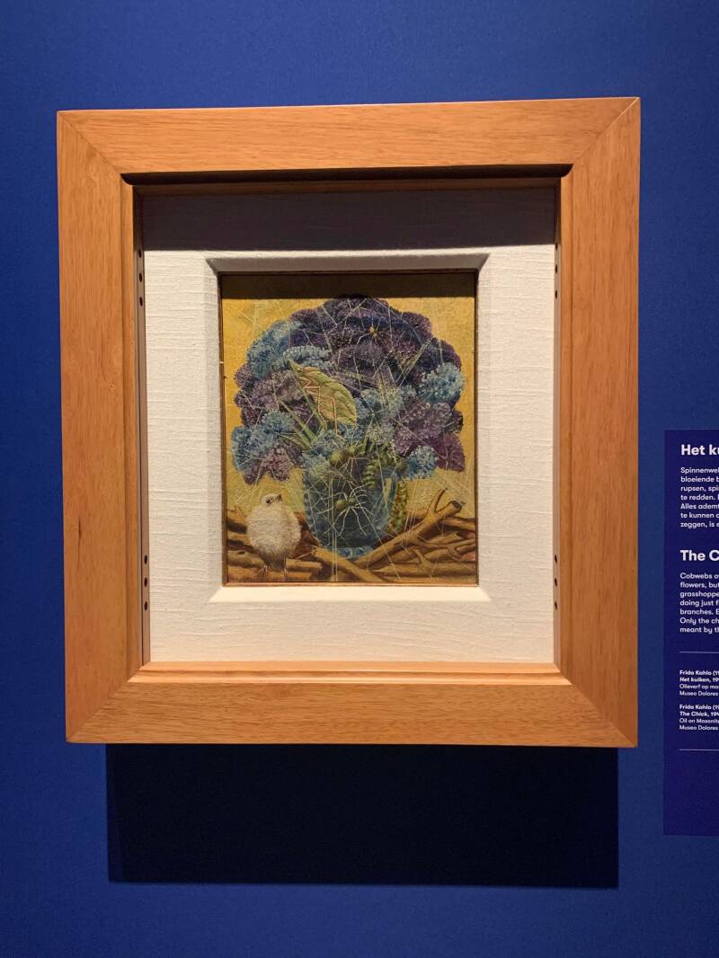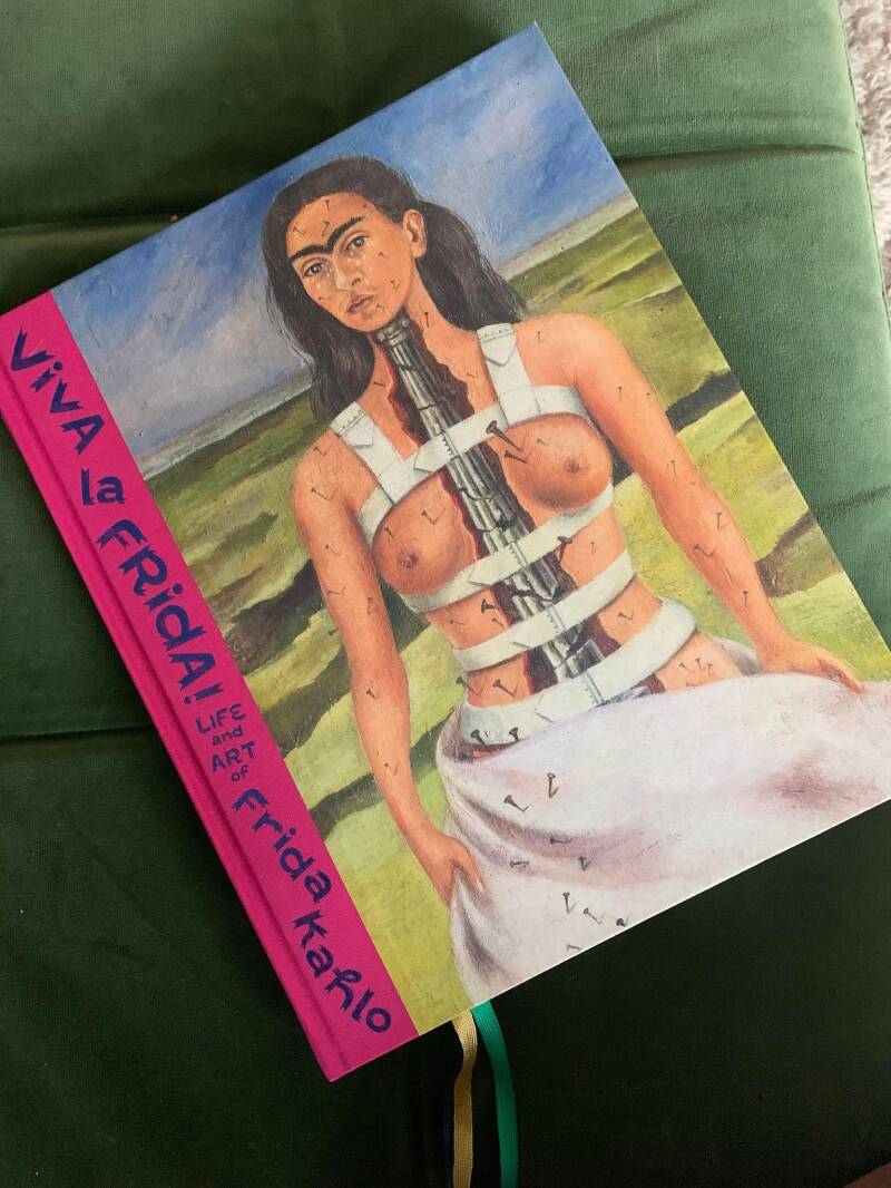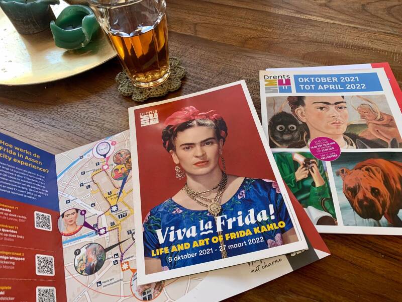 Het Drents museum is afgeladen druk. Frida is populair. We staan in een rij om de Viva la Frida galerij in te mogen en worden met groepjes binnen gelaten. Zo krijg je toch alle tijd om alles te bekijken. Het is veel. Foto’s uit haar jeugd, genomen door haar vader die fotograaf was, foto’s van na haar ongeluk, werk uit haar beginperiode met portretten waarvan het ene oog hoger zit dan het andere. Haar leed en pijn verbeeld in tekeningen en verf. Haar ontzettend lelijke echtgenoot waar ze een haat liefde verhouding mee had. Bewegende beelden. Ze was mooi. Je ziet haar ontwikkeling, de schilderijen worden beter. Ik raak geïnspireerd. Ik ga me toch eens wagen aan portretten… Het is veel en intiem. Haar hele leven uitgebeeld. Gevoel, gedachten. Ik ben onder de indruk. Als we na 1,5 uur klaar zijn lopen we nog even door de rest van het museum. De Veenlijken en het historische gedeelte van het museum. En als laatste de winkel. Ik wil alles hebben. De kussens en sjaals en sieraden. Maar ik weet me te beheersen en koop alleen het boek. Zo kan ik thuis alles op mijn gemak nog eens overdoen.