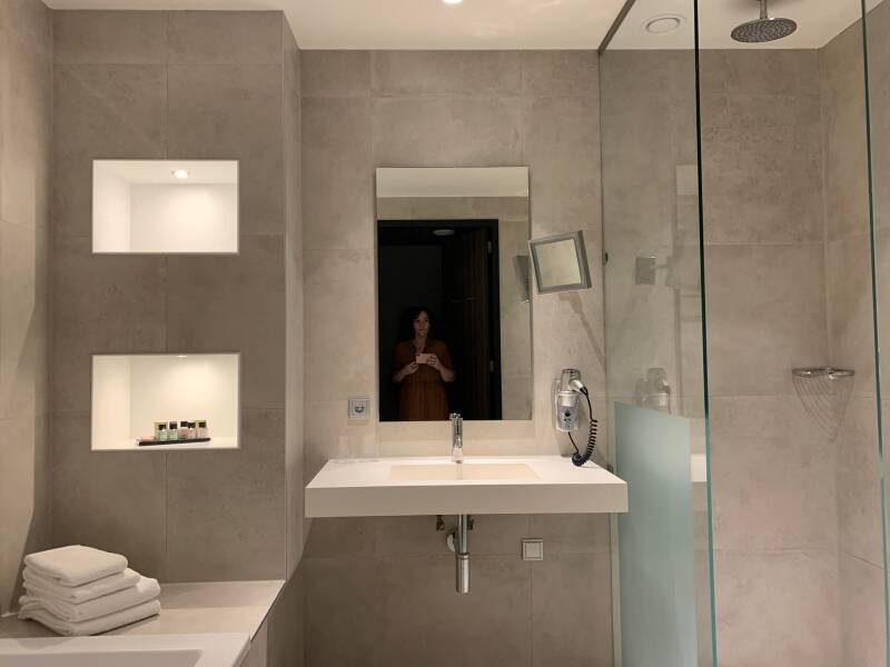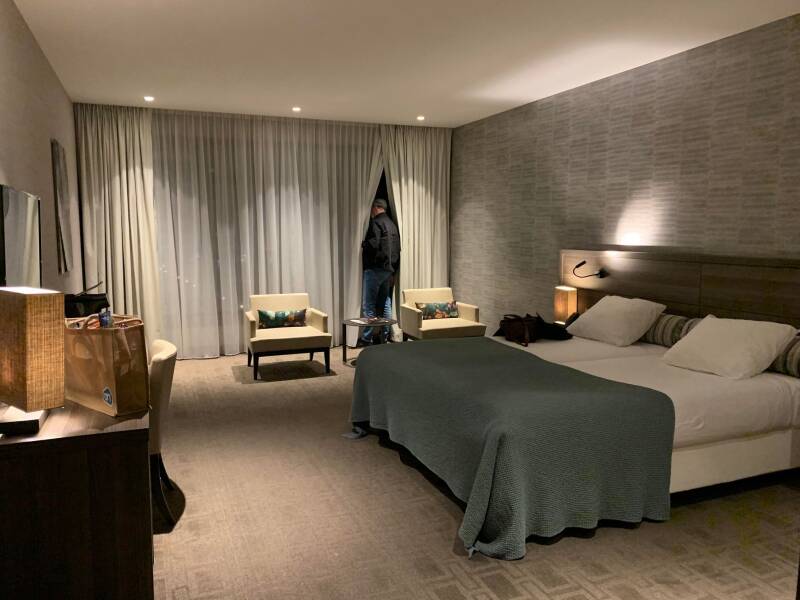 We hebben geen zin meer om helemaal terug naar huis te rijden en besluiten ergens te gaan slapen. We nemen de opties door en bedenken dat ons nichtje in Zwolle bij vd Valk werkt. Arjan appt haar en ze werkt vanavond. Ze regelt voor ons een kamer met ontbijt. Dan bedenken we dat we niks bij ons hebben. Als de sodemieter zoeken we een Appie op en slaan tandenborstels en toiletartikelen in. Bij de Dirk ernaast vinden we zowaar schone onderbroeken! In de auto bellen we met de meiden en vertellen we dat we bij Marjolein gaan logeren.Die vermaken zich prima zonder ons. Met onze Albert Heijn tas lopen we het hotel in en daar staat ze te stralen achter haar desk. We kletsen even bij en ondertussen ontstaat er een rij achter ons. We moeten gaan, we houden haar van haar werk. Op de 5e verdieping openen we onze deur en komen we een grote luxe kamer binnen. Die lieverd heeft ons verwend! We relaxen met een theetje en chocola en slapen op een heerlijk bed. Vanmorgen konden we rustig aan doen. Lekker ontbijten en op ons gemakkie weer naar huis. Op de bank nog even nagenieten van Frida. En een nieuw doek bestellen…