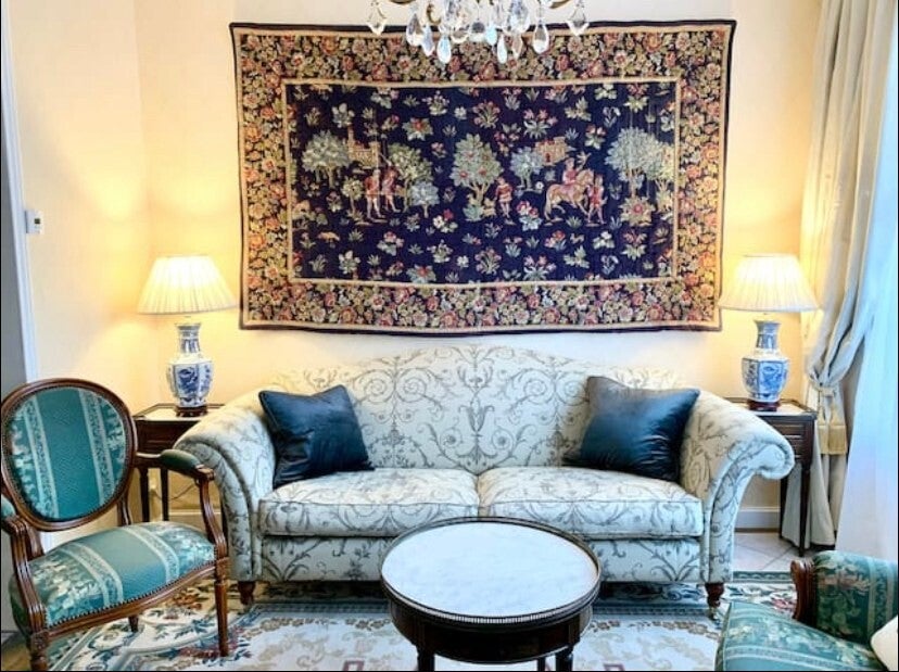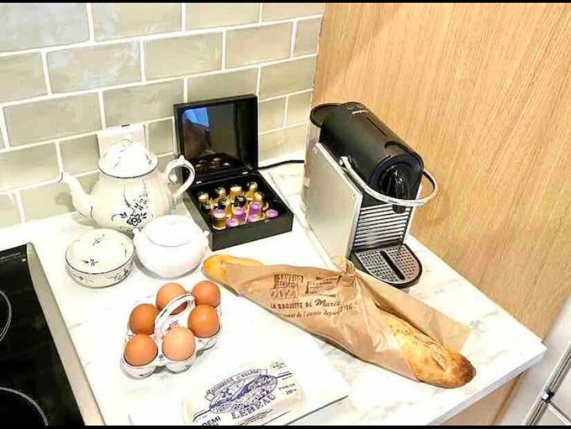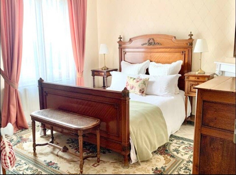 Omdat Isa nog niet kan lopen waren we aan het prakkiseren wat te doen. We konden thuis blijven om haar te ondersteunen of we gooien haar gewoon achterin de auto en is ze er meteen ff lekker uit. Zo gezegd zo gedaan. De vierde reiziger is onze Saartje. Het teckelkind gaat haar eerste vakantie beleven. Toen moest ik nog een geschikt huis vinden. Ik vind het een sport om een bijzondere plek voor een goeie prijs te vinden dus ik ging struinen. Het werd praktisch last minute en veel was al weg. Er kwamen huizen voorbij waar je nog niet dood gevonden wil worden of pareltjes maar met onmogelijke trappen of geen honden welkom. Ik begon al aardig te stressen en heb regelmatig de laptop aan de kant gegooid. Maar toen zag ik hem. De foto’s deden mij glimlachen en ik zag mezelf al languit op dat bed liggen. Met deze inrichting zal ik mezelf in de serie Bridgerton wanen. Ik haal Isa erbij. Die werd er ook wild enthousiast van. Zij ging zelfs in haar hoofd door haar kledingkast om te kijken of ze zich er op kon kleden. Maar we zijn er nog niet. Zou onze teckelprinses zich ook met haar derrière op het victoriaanse vloerkleed mogen begeven? Ja! Hondjes welkom. Er is zelfs een geheel omheinde tuin. We worden steeds blijer. Beschikbaarheid, check! Betaalbaar, check! Netflix, boulangerie op de hoek, vaatwasser, wasmachine en droger, handig, zelfs luxe bad olie-tjes en shampootjes inbegrepen. En ontbijt inbegrepen?? Hoe dan? We grappen dat we elke dag ontbijt geserveerd gaan krijgen. Maar dat zal wel anders zitten. Beter gaat het niet worden. Als de sodemieter reserveren!