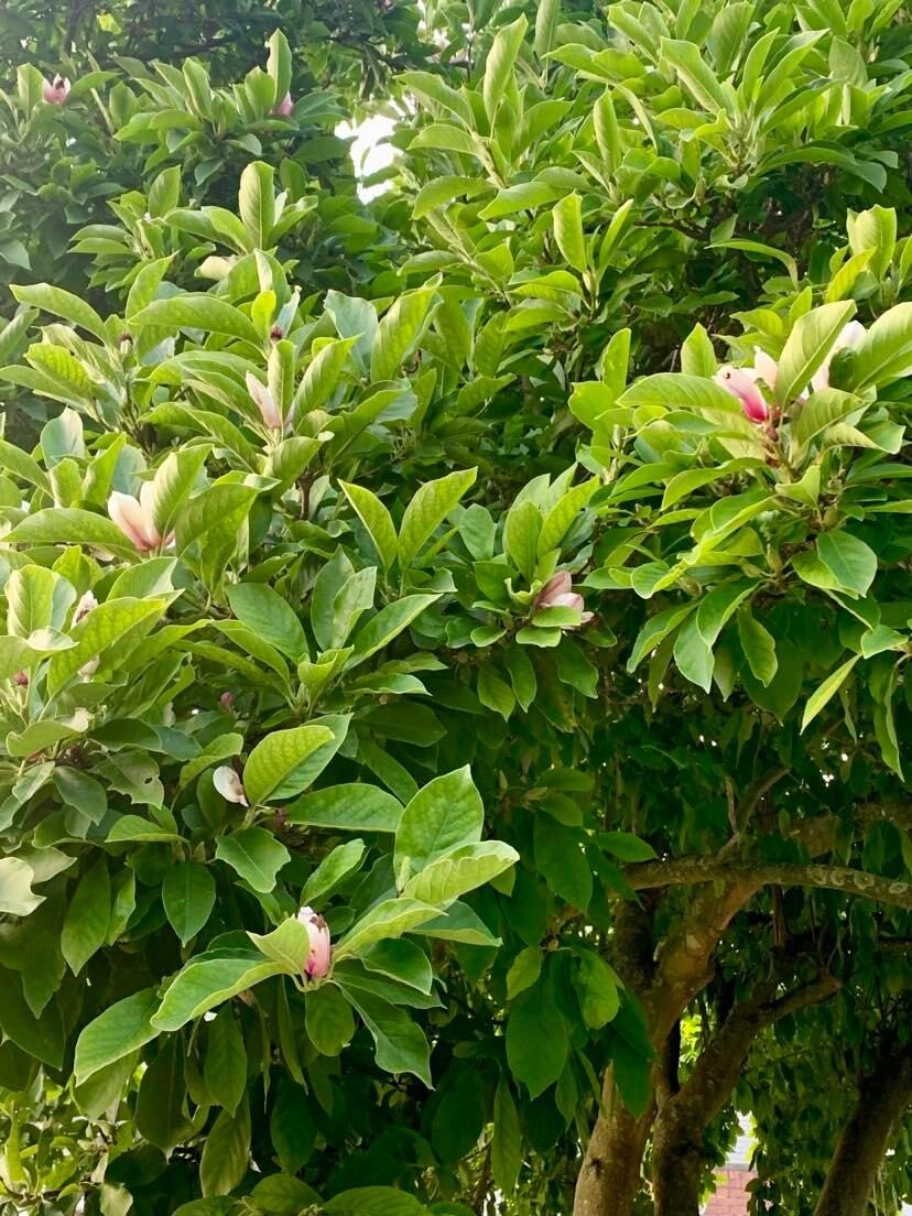 We treden binnen en de hal is beeldschoon. Met verse pioenrozen. Als we verder lopen ben ik blij om te zien dat de foto's niet gelogen hebben. Het is een plaatje dit huis. Grote, nieuwe badkamer, keuken perfect en oh, kijk al die mooie schilderijen. Is dat een Magnolia in de tuin? Zo groot heb ik hem nog niet gezien, prachtig exemplaar! Geen gras, zoals ons al was gemeld, maar gelukkig ook geen zandbak. Op het aanrecht ligt een gezellig briefje en vers brood, boter en eieren. En een fles wijn. Lekker hoor. Vlug naar boven. ja hoor, kijk die slaapkamers, een plaatje. Ik drapeer mijzelf op het bed, daar had ik me op verheugd. Isa ligt in de "roze kamer", ook een fijne.