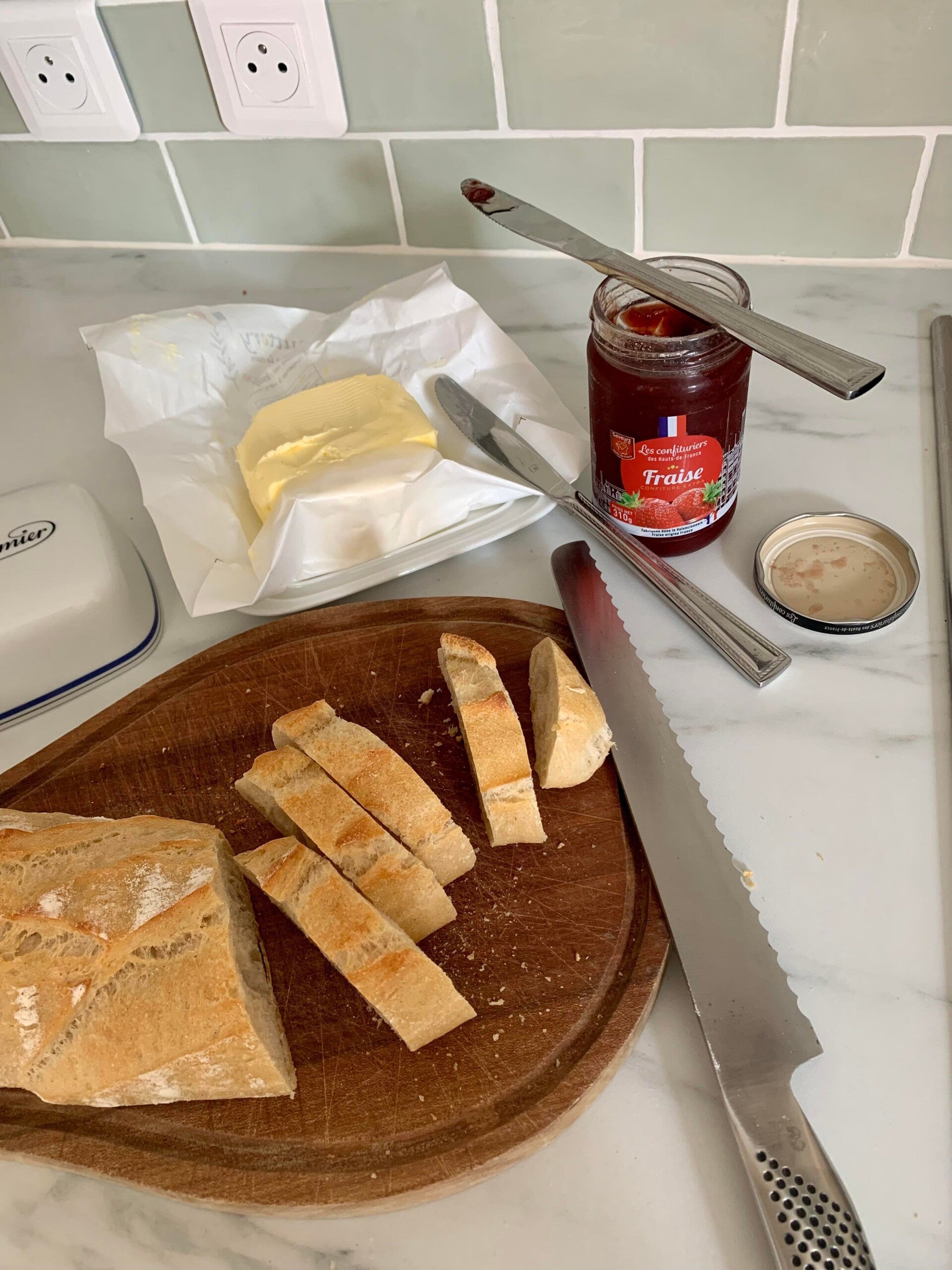 Terug naar son frère. Hij vraagt of het lukt met de app. In het Engels gelukkig. Non, niet dus. Hij trek de deur dicht en zegt dat ik moet oefenen. Hij laat zien dat ik langer op het icoontje moet drukken et voilà, de deur gaat open. En zo gaat hij ook weer dicht. Geen sleutels. Als mijn telefoon leeg is, of kwijt of zo, staan we dus op straat. Niet druk om maken, loslaten...
