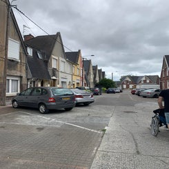 Isa gaat in de rolstoel want ze kan nog niet te lang lopen met de krukken. Ze vindt er geen reet aan in dat ding, maar het is toch handig dat we hem hebben. Het is een echte Zondag en rustig in de straat. We lopen door het dorp. Schattige huisjes, Hele oude huisjes, mooie tuintjes, vervallen huisjes, verwaarloosde tuinen, het is van alles wat. In het dorp valt niets te beleven. Ook qua aantrekkelijkheid zouden we het niet aanraden. Maar wij hebben een auto en die kan ons overal heen brengen, dus daar zitten we niet mee. We zoeken onze weg terug door een wir war van rolstoel-onvriendelijke straten en komen weer uit bij ons "winkelcentrum" aan de overkant. De Supermarché is dicht maar tot Isa's grote vreugde zit er ook een Mac Donalds. We besluiten vanavond tijdens de voetbalfinale Mac te gaan halen.
