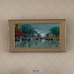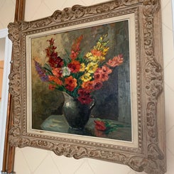 Ik doe een rondje door onze privé galerie. Het hangt hier bomvol met schilderijen. Mooie ook. En spiegels, heel veel spiegels, je komt jezelf constant tegen. Isa is bezig om in elke spiegel een selfie te maken. ik ben benieuwd hoeveel het er worden. De schilderijen op de foto zijn alleen van beneden. Boven moet ik ook nog even vastleggen. En dan dat kinderkopje in de gang. Als Isa op de stoel in de salon zit, kijkt dat kind haar constant aan. Ze wordt er eng van.