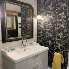 We gaan vandaag geen gekke dingen doen. Op de planning staat een wandeling door het dorp en meteen even een boodschapje meenemen. Verder is het chillen geblazen en ondertussen de vrouwen op de fiets en het voetbalveld aanmoedigen vanuit de salon. We poedelen in de badkamer met koninklijke gouden accessoires en doen aan brunchen vandaag. Het is een graad of 25, bewolkt en er staat veel wind. Lekker. Isa ligt nog heerlijk in haar prinsessenbed, dus die gaan we even wakker trommelen.