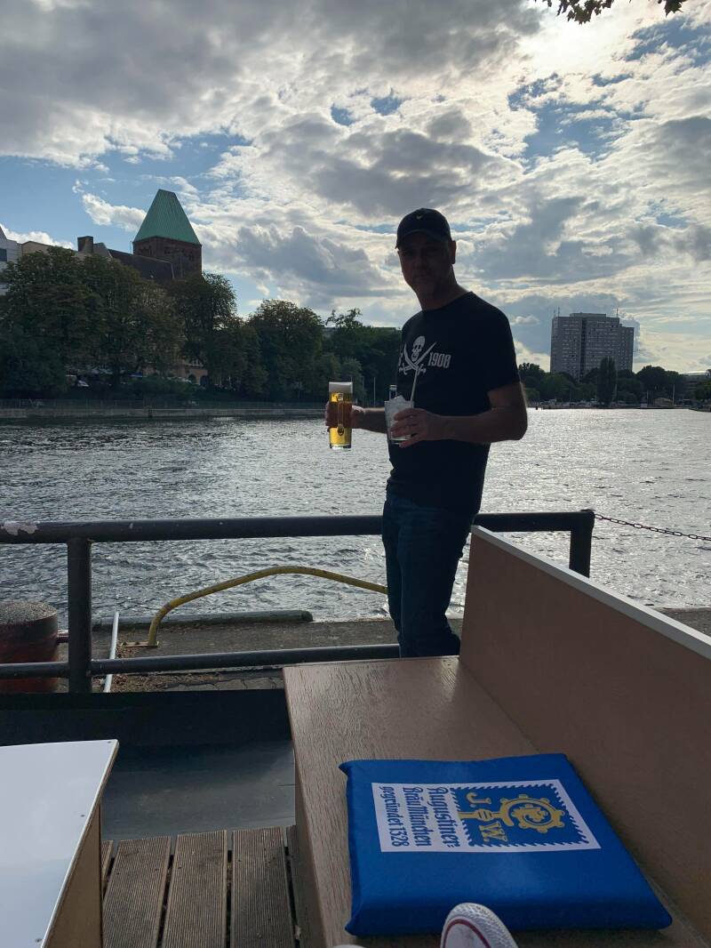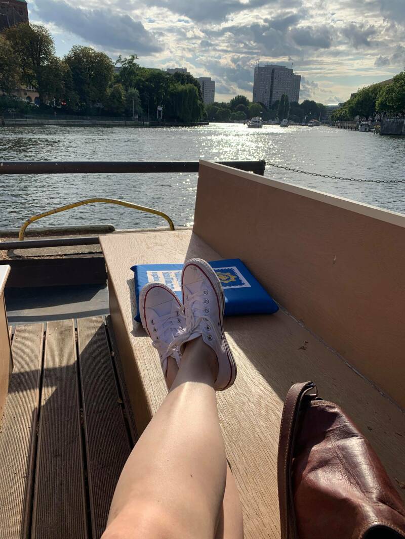 We lopen verder en lopen en lopen en lopen… Ik kijk mijn ogen uit, op elke hoek zie ik wel iets moois maar een fijn terrasje komen we nog niet tegen. We zitten wel een stuk van het rumoer af. En dan opeens aan het water spotten we een soort van strandtent.Maar dan zonder strand. En potverdikkeme, volop cocktails! De zon is inmiddels helemaal doorgebroken en ik neem vast een plekje bij het water in beslag terwijl Arjan drankjes gaat scoren. De dame heeft er een pittige Mojito van gemaakt en al na twee slokken verklaar ik mijn liefde aan Berlijn. Arjan heeft een echte Duitse rakker besteld. We genieten. Om te voorkomen dat we gaan opstijgen moet er ook maar even gegeten worden. We lopen over een brug en komen eindelijk wat eetgelegenheden tegen. We kiezen voor een pizzeria waar een vriendelijke jongen voor staat. Hij begeleid ons naar boven. We kijken elkaar aan want het restaurant is helemaal leeg en wat sfeerloos. Maar goed, we hebben honger dus toe maar. Zodra we zitten en een cola en een biertje hebben besteld gaat de muziek op standje 10. De boxen zijn niet al te best en de stoelen en tafels dreunen vrolijk mee. Arjan neemt een slok en gaat bijna over zijn nek. Alcohol vrij. We kijken op de kaart en het blijkt dat hier helemaal geen alcohol word geschonken. Oké, ook goed, maar deze was niet te doen. de vriendelijke jongen komt onze bestelling opnemen, een pizza en een lasagne. Tijdens het wachten sodemieter ik bijna van mijn stoel door dat gedreun dus loop ik maar even naar de bar om te vragen of het allemaal wat zachter mag. Dat mag, en vriendelijk lachend word aan mijn verzoek voldaan. Het eten is best lekker. Best wel. Met onze buikjes vol rekenen we af en vraagt de leuke jongen waar we vandaan komen. We klessebessen wat over Nederlandse steden waar hij is geweest en hij blijkt uit Syrië te komen. We zwaaien vrolijk gedag.