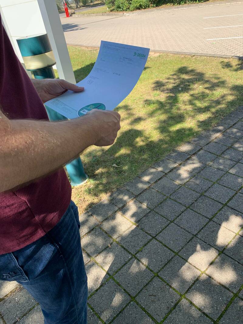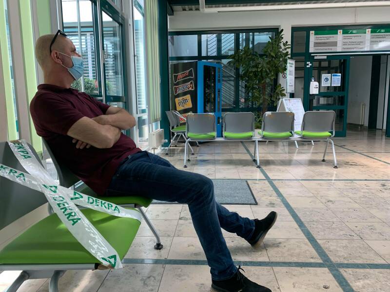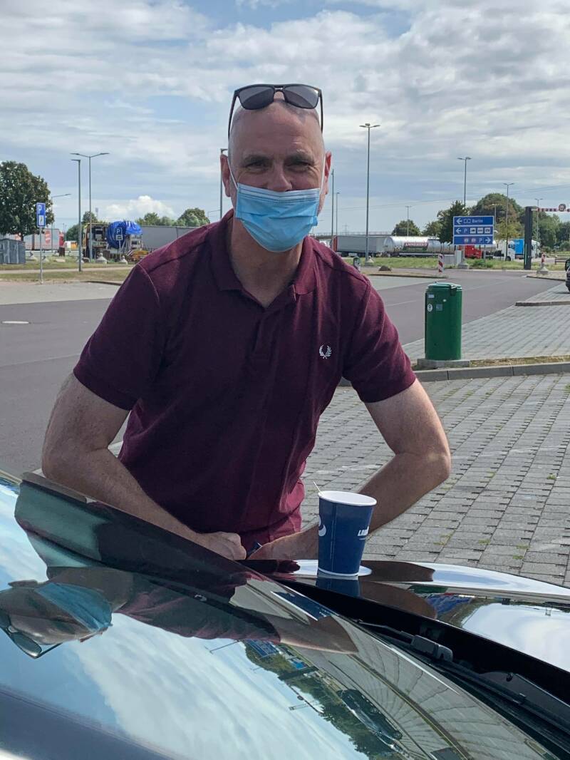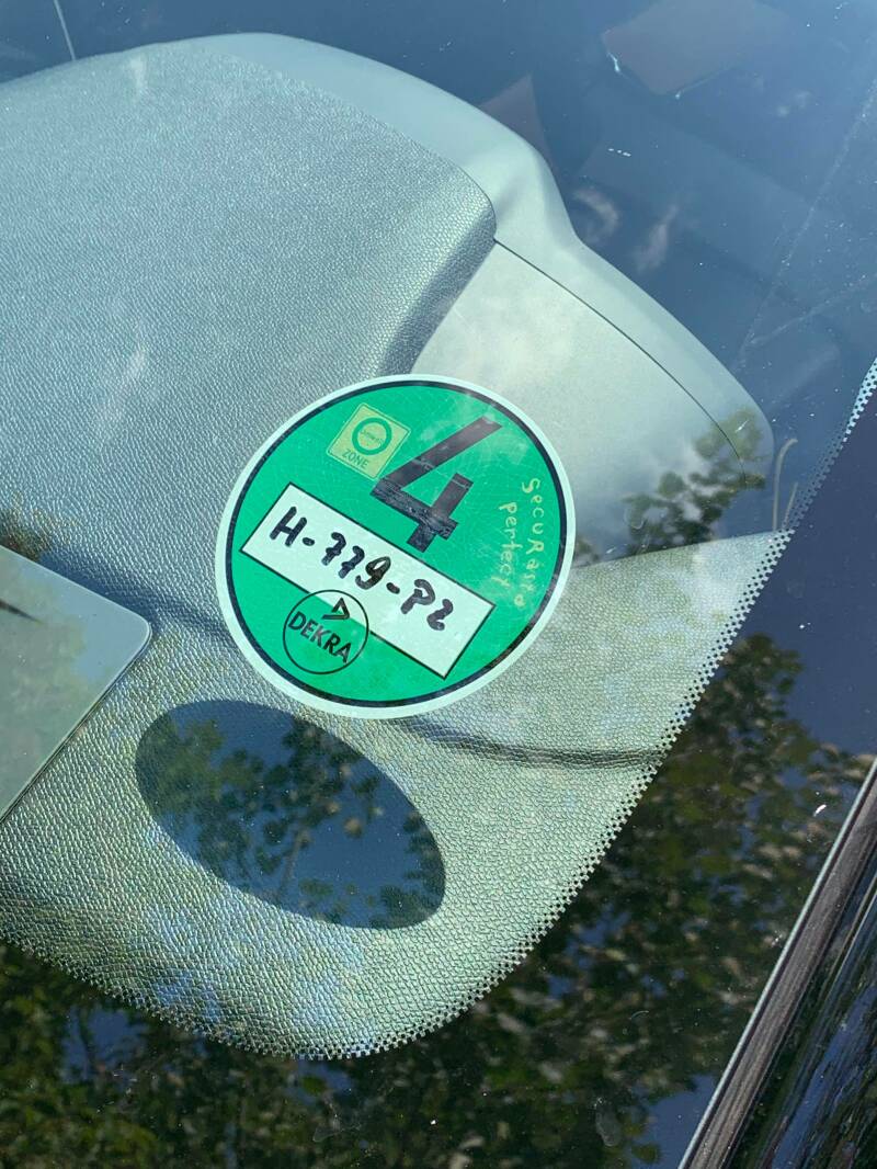 Ik kan niet veel op maar heb over een uur vast weer honger dus ik wil een broodje mee gappen. Er zit een oudere vrouw achter ons die ons uitgebreid zit te bekijken. Da’s een hindernis. Ik smeer vast het broodje en dan staat ze op om iets van het buffet te halen, als ze langs loopt kijkt ze zonder gêne op mijn bord. Ik grijp mijn kans en wikkel mijn broodje in een servetje en stop het in mijn tas. Als ze terugkomt is mijn bord leeg. Ze kijkt naar mijn bord en dan naar mij en ik zie haar gewoon denken. Arjan gaat ook nog wat halen en krijgt op zijn lazer omdat hij zijn mondkapje is vergeten op te doen. Hij rent snel terug om hem te halen. Als we klaar zijn gaan we naar de kamer om onze spullen in te pakken en te vertrekken. Op naar Pierre. De zon schijnt, dat is bemoedigend! De jacht naar de groene sticker kan beginnen. We stoppen bij 5 tankstations maar nergens een sticker te bekennen. Wel weer een reprimande voor mijne man wat zijn mondkapje zat niet goed. Ze hebben hier een serieus mondkapjes regime! We worden nu een beetje chagrijnig van die kut sticker. Er komt een Nederlander voorbij rijden MET een groene sticker. Suckers. We slaan weer aan het googelen en komen erachter dat die dingen bij Dekra te krijgen zijn. Een soort CBR/ANWB achtig bedrijf. Ik zoek op Google Maps en vind er een op onze route. We moeten even off road maar het is het proberen waard. En hoera! ze gaan hem voor ons maken. Ja, daar moet je dus 20 minuten op wachten maar dan heb je wel wat! We rijden weer met een gerust hart verder. Dat scheelt toch een flinke boete of wellicht een arrestatie.