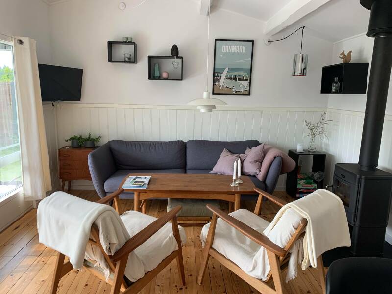 We zijn vlot van de boot af en hebben nog 20 minuutjes te rijden. Ik heb in Idestrup een zomerhuisje geboekt via AirBnB en als we aankomen op ons adres blijkt het op een chaletpark te staan. Maar chalets zijn het bij lange na niet, er staan de prachtigste huizen op dit terrein. Wij stoppen bij nummer 16. Dit huis ziet er wel verweerd uit. En ik herken het niet van de foto. oh oh. We lopen er omheen en zoeken naar de sleutel waarvoor Charlotte mij de aanwijzingen heeft gegeven. Maar niks. Het huis is wel zwart net als op de foto... Ik log in op mijn account. Heul ander huis man! Ik check de mail, ja, toch echt nummer 16. Dan komt de buurman naar buiten. Ik vraag hem of we goed zitten. Hij kijkt naar mijn mail. Het adres klopt zegt hij en hij weet het verder ook niet. Ik ga Charlotte maar eens contacten en ondertussen vrees ik grote vrezen, zal dit de eerste keer zijn dat we worden bedot op AirBnB? Als ik de chats met Charlotte bekijk zien we dat zij heeft aangegeven dat we op nummer 6 moeten zijn. En adem uit...