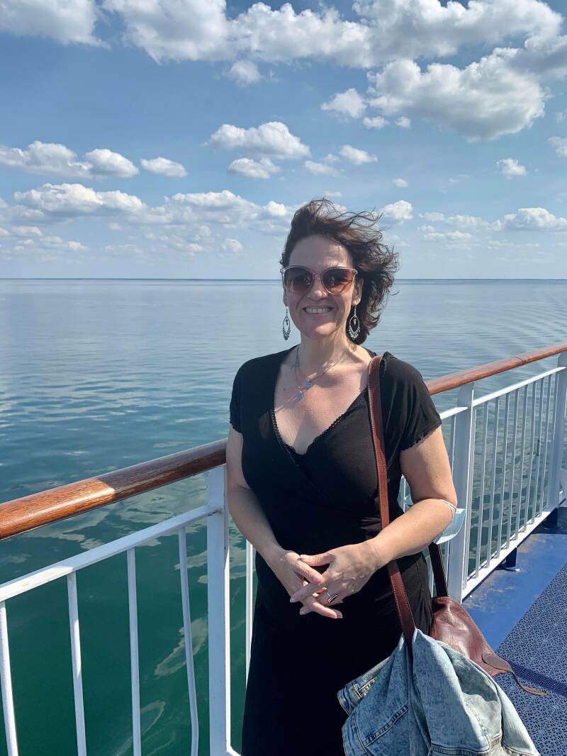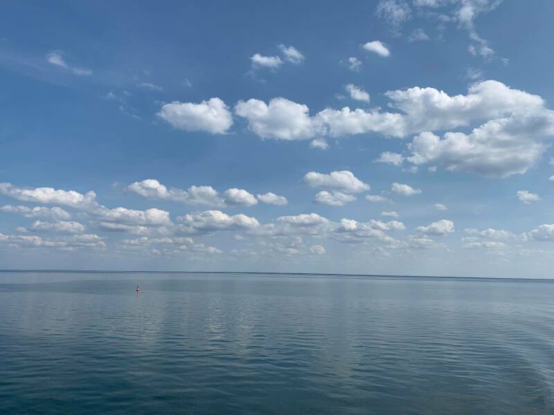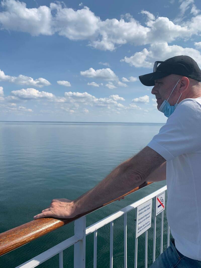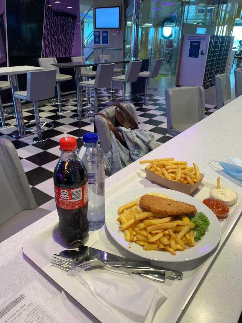 Wederom staan we in een lange rij om de boot op te gaan en zien de veerboot aan komen varen. Niet veel langer daarna staat onze Pierre aan dek en kunnen wij naar boven. We willen eerst gaan lunchen en kiezen vandaag voor een vette bek. Na het eten gaan we naar buiten. Het is heerlijk! Ik had een jasje meegenomen maar die blijkt niet nodig. We besluiten lekker buiten te blijven zitten. De rit duurt bijna twee uur maar die vliegen voorbij. We zien Gedser al naderen.