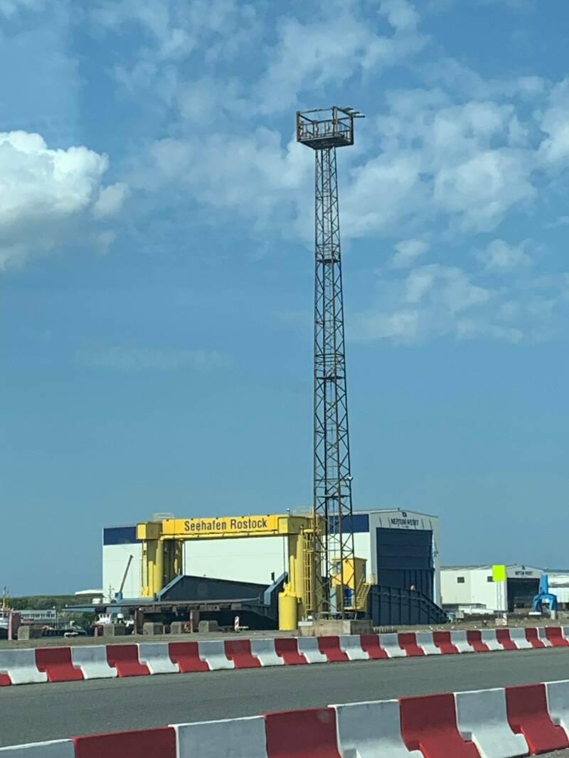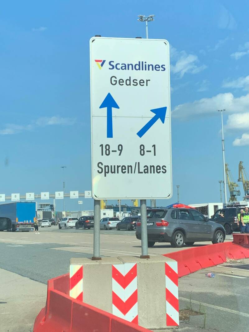 In alle vroegte staan we op. We moeten op tijd bij de veerboot zijn en dat kost ongeveer 3 uur. We hebben er 4 uur voor uitgetrokken voor je weet maar nooit. Als ik ga douchen en inpakken gaat Arjan ondertussen verse broodjes halen bij de bakker in de stationshal. Die hadden we gisteren al gespot. We checken uit en begroeten Pierre die we twee dagen aan zijn lot hebben overgelaten in een Oost-Duitse garage. Na drie rondjes garage, (want waar is de uitgang?) rijden we Berlijn in. Het duurt nog even voor we er überhaupt uit zijn, deze stad is zo mega groot. Maar dan komt de snelweg in zicht. Shit, werk aan de weg, we mogen maar 60 km.pu. Het lijkt eindig lang te duren maar na 40 km. kunnen we eindelijk weer door. Dit gebeuren herhaalt zich meerdere keren maar de navigatie schijnt dit al berekend te hebben want we verliezen wonderwel geen tijd. Als we in Rostock aankomen vraag ik me af of ik met die zwaar bevochten ferry-bevestiging gewoon in kan checken. Ik ga het voor de zekerheid maar even in het gebouwtje vragen. De man die mij helpt scant de mail en verwijst me door naar de incheckpoortjes. We wachten in de rij en vragen ons af of we eigenlijk wel met een ID naar binnen mogen. Hoort Denemarken wel bij de EU? Stel je voor dat ze ons er niet in laten. Weer lekker op tijd uitgezocht Maris, pfff. We houden onze ID's gereed en wachten gespannen af. De vrouw bij het loket scant eveneens de mail en taalt niet om een identificatie. Oké, appeltje eitje dus.