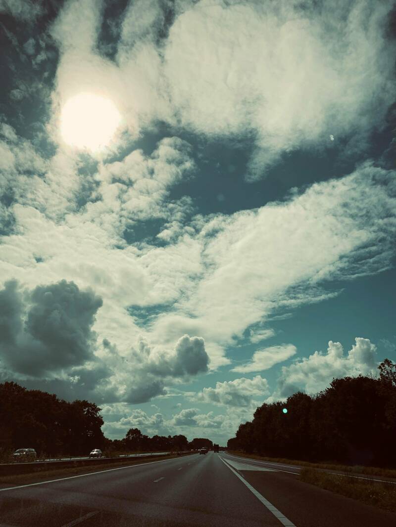 Op een kleine stau na, kunnen we in een keer doorknallen naar Nederland. We rijden door stortregens en vervolgens weer door stralende zonneschijn. En als ik naar de lucht kijk stel ik vast dat onze "Hollandsche" wolken hemel toch echt de allermooiste is.