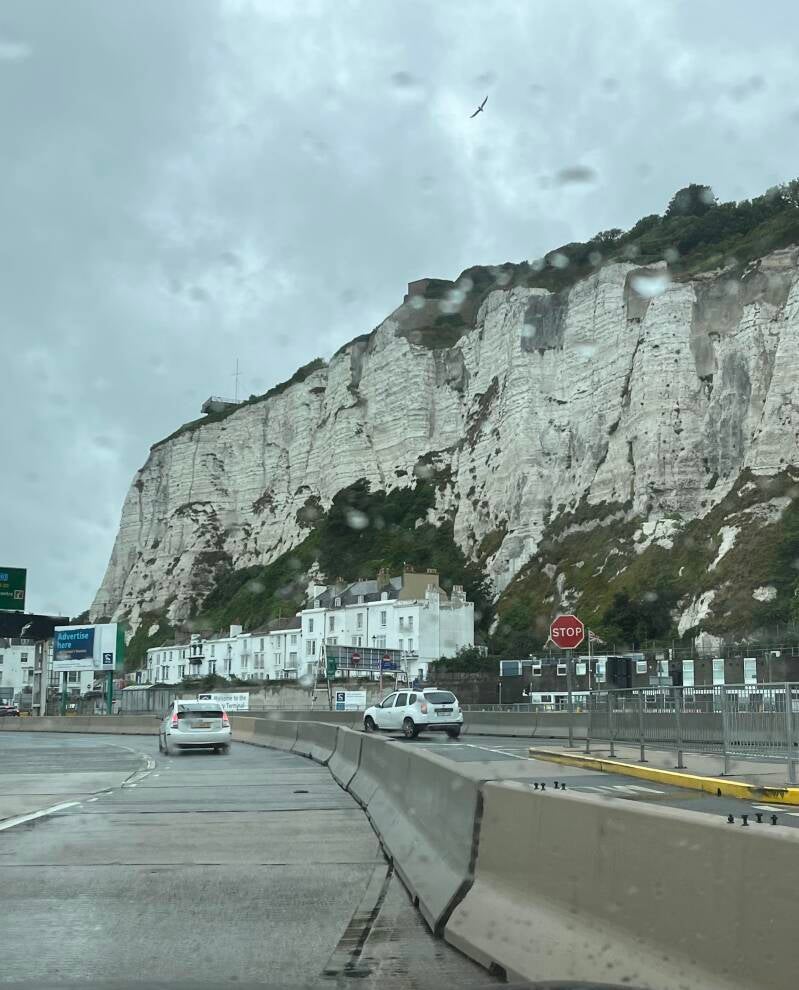 Mooie krijtrotsen komen in beeld en we maken ons klaar om naar de auto terug te gaan. Even later rijden we Dover in. Links. Dat is weer even wennen en ik vind het spannend. Gek is dat, we hebben dit in het verleden vaker gedaan en toen heb ik me nergens druk om gemaakt. Het lijkt wel of we met het ouder worden ook banger worden. Wat stom zeg.