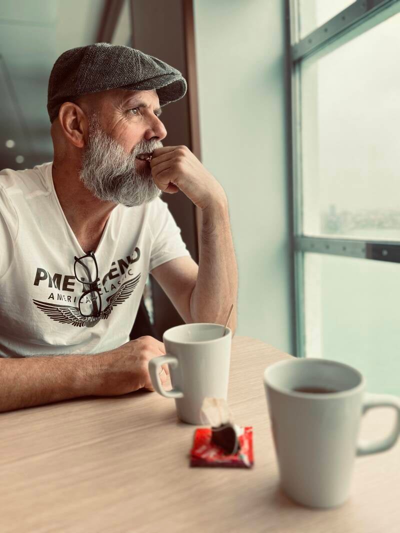 En dan mogen we de veerboot op. In colonne rijden we naar binnen en parkeren we onze Pierre. We lopen naar boven en vinden een plaatsje bij het raam. Voordat we gaan varen heeft de kapitein nog een boodschap voor ons; We moeten rekening houden met een woeste zee en oppassen met lopen. We kijken opeens niet meer zo uit naar de komende twee uur. In het verleden zijn we samen eens zo erg zeeziek geweest dat ik toen voor eerst heb gezien waarom misselijke mensen altijd groen worden afgebeeld. Het eerste half uur valt mee. Ik ben wat raar in mijn hoofd, beetje duizelig maar verder oké. Maar na een een uur gaat het toch wel echt tekeer. Er worden kotszakjes uitgedeeld en ik moet dan plassen. Ik loop alsof ik straal bezopen ben langs de kanten. Ik ben gelukkig niet de enige en al die zwalkende mensen zijn ook heel grappig om te zien. Bij de wc aangekomen probeer ik de deur open te krijgen. Dat gaat moeilijk want het is zo'n klap-ding. Als ik duw, duwt de boot weer terug. Ik schiet in de lach en krijg vanachter de deur met luid gegiechel hulp van vrouwen die ook staan te zwaaien in de wc. Als ik eindelijk binnen ben zie ik iedereen tegen de muur staan, het is een raar gezicht. Ik merk al snel waarom, want als je in de het midden blijft staan val je gewoon om. Dus ik ga ook tegen de muur staan en bedenk me hoe ik mijn plasje goed moet gaan mikken zometeen. In de hoek wc heeft iemand het heel beroerd. Ik probeer mij af te sluiten van de geluiden want dat trek ik slecht. Als ik aan de beurt ben zwalk ik het hokje in. Probeer je voor te stellen hoe je een broek naar beneden doet als je tegelijkertijd je evenwicht moet bewaren. Nou dat dus. Ik hoor oe's en aa's uit de hokjes komen en deuren klapperen. Het is een waar lunapark in die plee! Maar ik heb het droog gehouden en wurm me weer die deur uit. Arjan had gevraagd of ik op de terugweg nog wat te drinken mee wilde nemen. Nou, dat lijkt me even geen goed plan, dus ik kom met lege handen terug. Zo, ik zit weer. We zijn gelukkig niet misselijk maar lekker is anders. Mijn hoofd tolt en ik zal blij zijn als we er zijn. We benoemen nog even snel dat we over een paar dagen een 6 uur lange boottocht voor de boeg hebben en we gaan heel hard hopen dat het weer dan beter zal zijn...