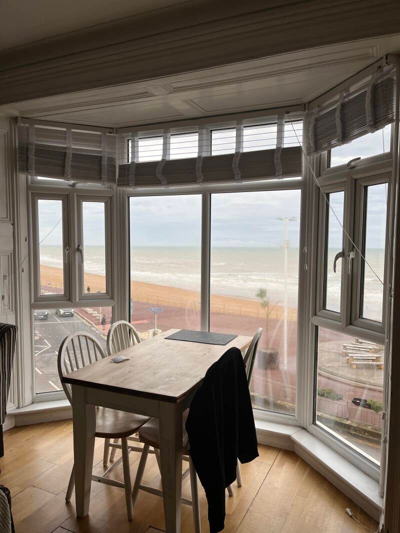 We genieten van het moois, typisch Engelse huisjes en gebouwen en vinden het leuk om weer eens terug te zijn. Toch ben ik blij als we aankomen in Hastings. Pierre krijgt een mooi plekje in de parkeergarage. We hebben een appartement dat uitkijkt op zee. Het is een prachtig plaatje. De WIFI is rete langzaam dus zal ik mijn dagelijkse opstel de morning after gaan plaatsen, anders ben ik er de hele avond mee bezig.