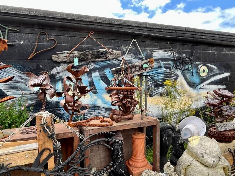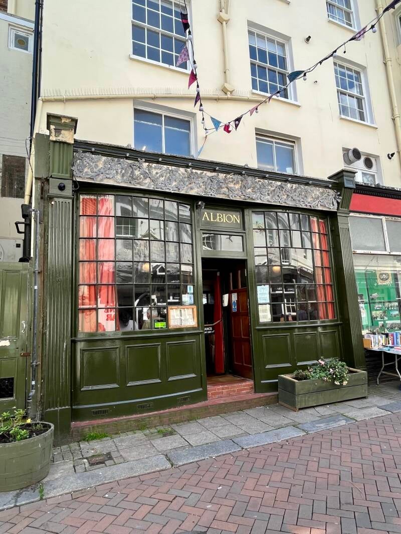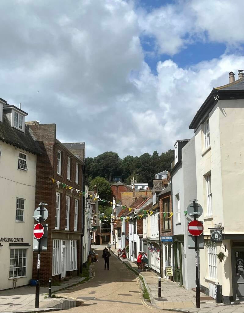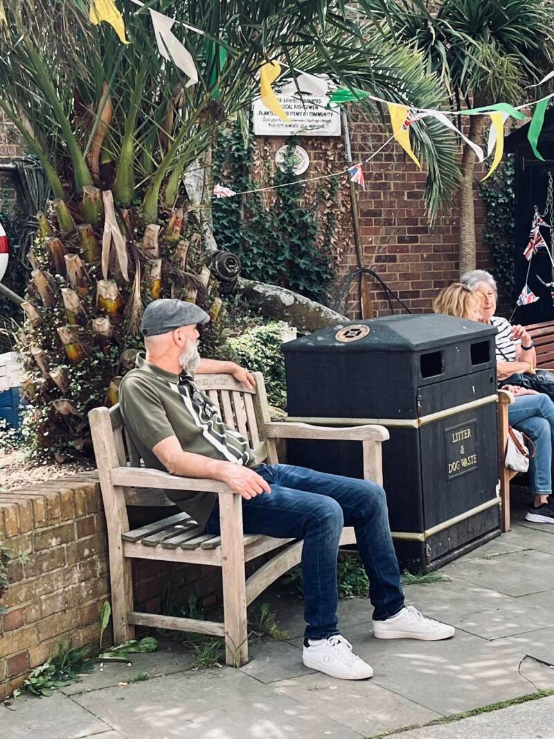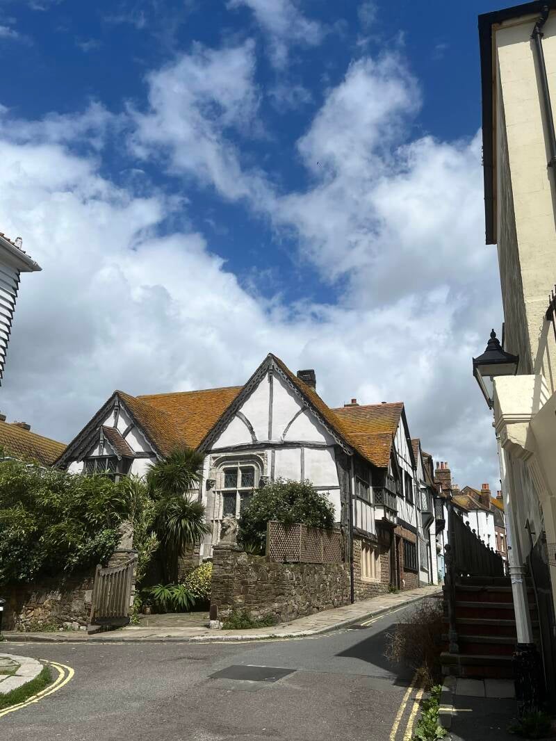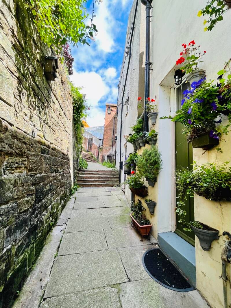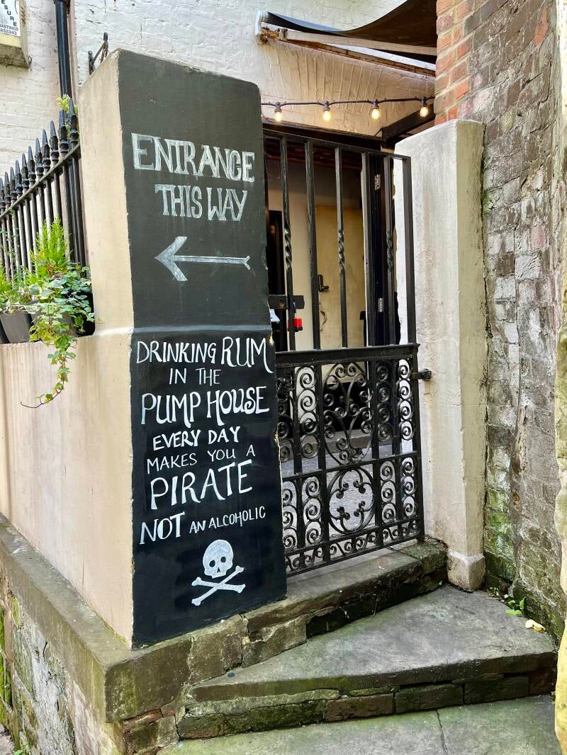 Daarna lopen we zo het oude centrum in waar we de mooiste oude pandjes zien en leuke winkeltjes vol met oude meuk en nieuwe meuk. Ik ben er dol op! We drentelen door de stad en als we een gezellig winkelstraatje tegenkomen gaan we bij een oude pub op het kleine terras zitten. We wachten tot er iemand onze bestelling komt opnemen en we ruilen van stoel omdat ik graag elke zonnestraal wil vangen en Arjan die juist moet ontwijken. De Engelse dame naast ons moet er om lachen en we zijn het eens dat je alle zon die kan krijgen meteen moet pakken. Ik heb al gezien dat ze hier ook bekend zijn met de Pornstar Martini, is dat even boffen. We hebben al lang en breed uitgezocht wat we willen hebben maar het duurt en het duurt maar er komt niemand. Dan leest Arjan dat je binnen aan de bar moet bestellen. Als we nou eens beter zouden lezen... En dan komt ons lekkers, het zonnetje schijnt vrolijk en we genieten. Bewust van het feit dat we dit maar mooi kunnen doen samen. Zelfs die klodder soep die ik op mijn been knoei kan de pret niet drukken.