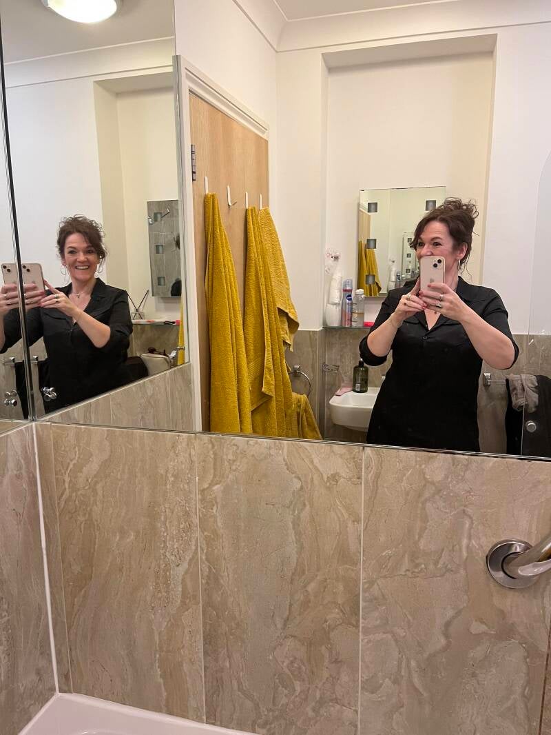 We zijn vroeg wakker. Héel vroeg voor ons doen. 7 uur is het en als ik naar buiten kijk zie ik de zon! Dat geeft de burger moed. Ik installeer me met een kop thee op de bank en kijk naar buiten. Er lopen mensen te joggen of hun hond uit te laten. Het is nog rustig aan het strand maar de golven gaan nog steeds flink tekeer. Ze spatten hoog op en ik geniet van het schouwspel. Ik zet de tv aan en kijk het weerbericht, de dame belooft dat het droog blijft vandaag! De Nederlandse dames gaan zo voetballen, gezellig, zo'n wedstrijd om bij wakker te worden. We ontbijten voor de tv met toast en cheddar en we juichen 7 keer voor onze helden. Na de wedstrijd ga ik douchen. Het is nogal een schouwspel want de badkamer bestaat namelijk uit spiegels en zelfs onder de douche sta ik naar mezelf te koekeloeren. Hoeft niet, echt niet.