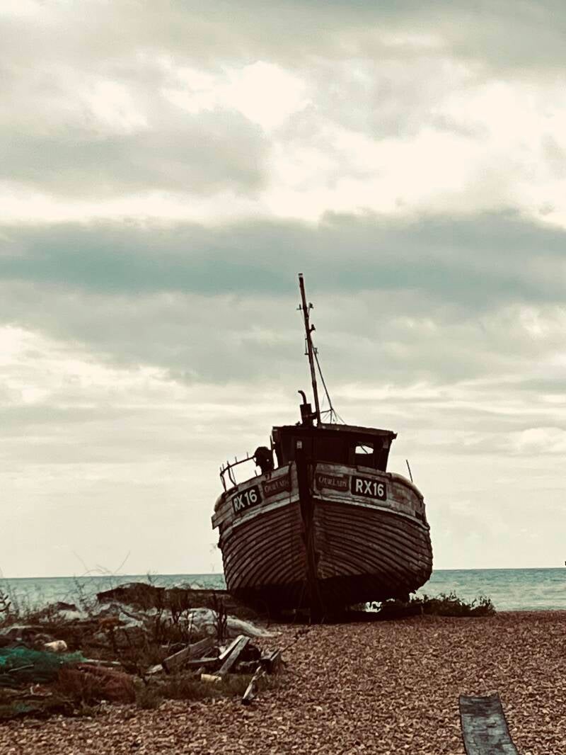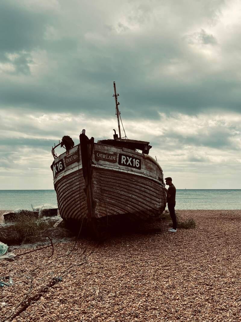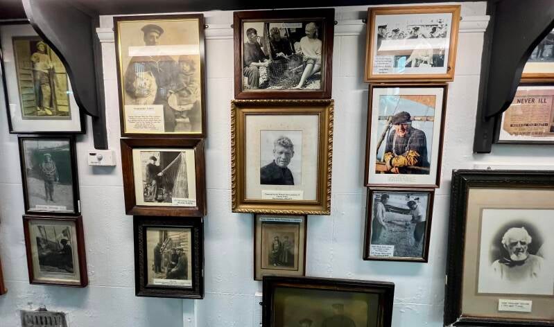 We gaan op pad. De wolken doen nog wat dreigend maar het trekt steeds verder open. Ik wil even dichtbij die woeste golven zijn dus moeten we naar de overkant. Dat doen we door onder de weg door te lopen via de subway. Gisteren dacht ik nog dat daar een metro was maar het betekent gewoon "ondergronds'. Het is een prachtig gezicht, die zee en die lucht. Nu kan ik ook even ons appartement goed op de foto zetten. De huizen aan de boulevard zijn prachtig om te zien zo van de overkant. Dan lopen we over het strand richting de haven. Daar is het inmiddels lekker druk. Er zijn speeltuinen en een paar kermisattracties. We kijken naar een achtbaan waar gammele karretjes met mensen vanaf razen. Die zijn niet lekker joh, daar ga je toch je leven niet aan wagen?! We komen bij oude scheepsschuurtjes en scheepjes daarachter. We beginnen te beseffen dat het een soort openluchtmuseum is. Oude houten viskramen die bewaard zijn gebleven met foto's van de mensen die hier werkzaam zijn geweest. Stuk voor stuk zeebonken. Mooie verweerde koppen die hun leven hebben gesleten met vissen op zee. Maar er zijn ook een paar boothuisjes die nog in gebruik zijn net zoals enkele boten. Die staan er gewoon tussen. We lopen tegen een klein museum aan waar we even naar binnen wippen en mooie verhalen lezen.