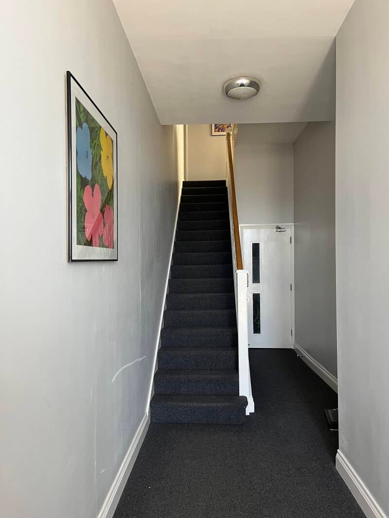 Als ik klaar ben en mijn haar wil gaan föhnen loop ik tegen een probleem aan. Mijn föhn past niet in de tussenstuk-stekkerdoosjes die we hebben meegenomen. (Engeland heeft namelijk heel andere stekkers dan wij, met drie uitsteeksels ipv twee.) Ik ga op zoek naar een föhn en vind een doos. Leeg. ik loop ondertussen scheldend rond want mijn haar pluist alle kanten op als ik het gewoon laat opdrogen, dus het is van levensbelang dat ik een föhn ga vinden. Alle hoekjes en laatjes pluizen we uit totdat Arjan er een vind in zijn nachtkastje. Logisch... Maar gelukkig. Met mijn krulborstel hetzelfde gelazer (daar doe ik de overgebleven pluis mee weg borstelen) die hebben ze niet in de nachtkastjes liggen dus ik gooi mijn haar maar omhoog vandaag. En nu weet je meteen waarom je mij nooit in een tent op de camping zal vinden.
