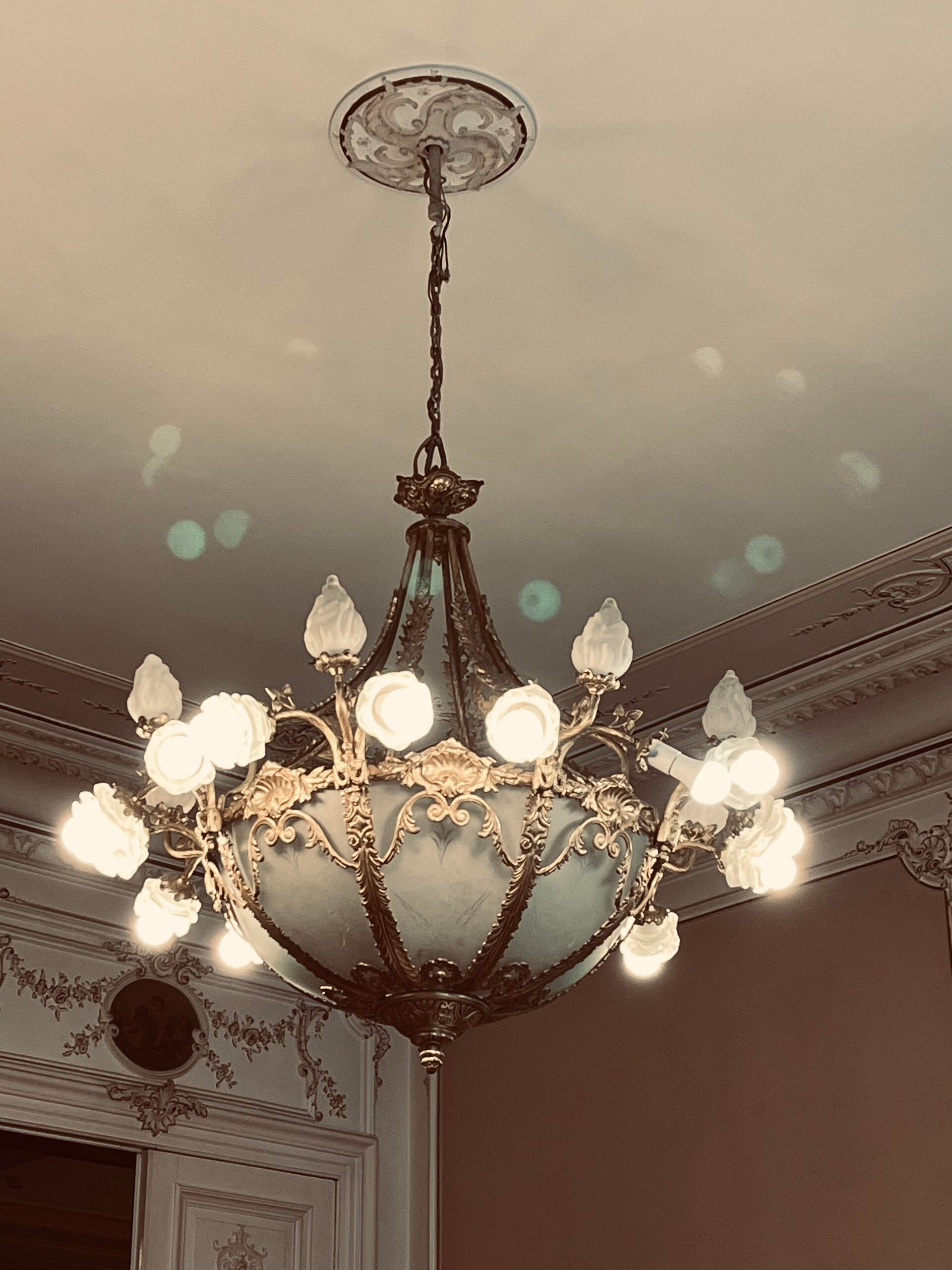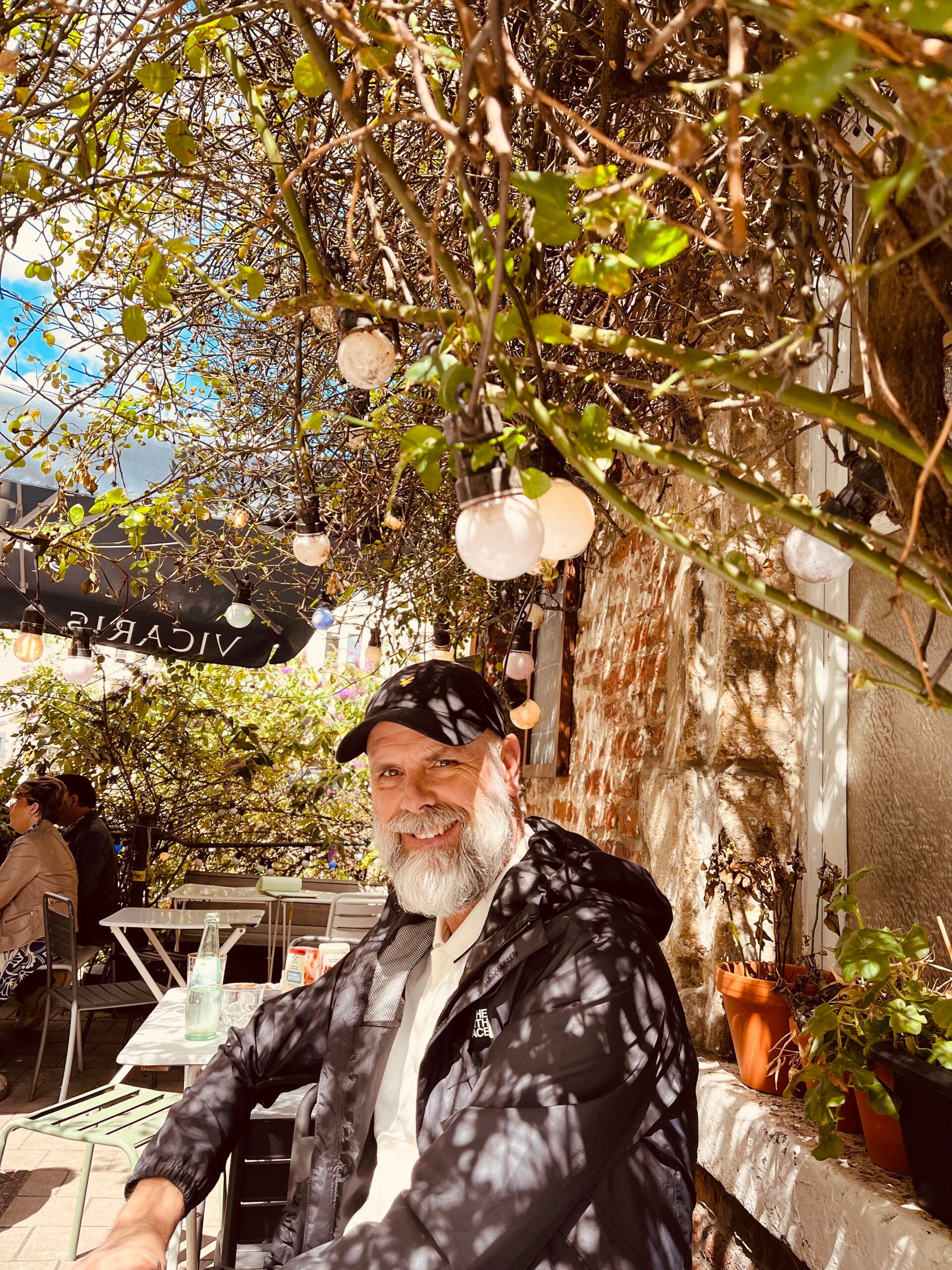We lopen tegen een schattig terras aan met lampjes in de bomen en struiken en strijken daar neer. Omdat het best fris is hebben we zin in warme chocolademelk. Gecombineerd met een croque monsieur. Het is helemaal niet zo druk op het terras maar de bediening is volledig van het padje. De een loopt constant met armen vol met eten en drinken, te zoeken wie wat heeft besteld en is onderweg alweer vergeten dat iemand gevraagd heeft om af te rekenen. De ander komt af en toe naar buiten stormen met een woeste blik en loopt dan driftig spullen van tafeltjes te halen. Tijd voor een doekje over de tafels hebben ze niet. Geen ketchup klodders deze keer maar ook dit is erg vermakelijk om naar te kijken. Voor hun niet natuurlijk, die arme meiden hebben klotsende oksels maar die ongeorganiseerde toestand werkt ons nou eenmaal op de lachspieren.