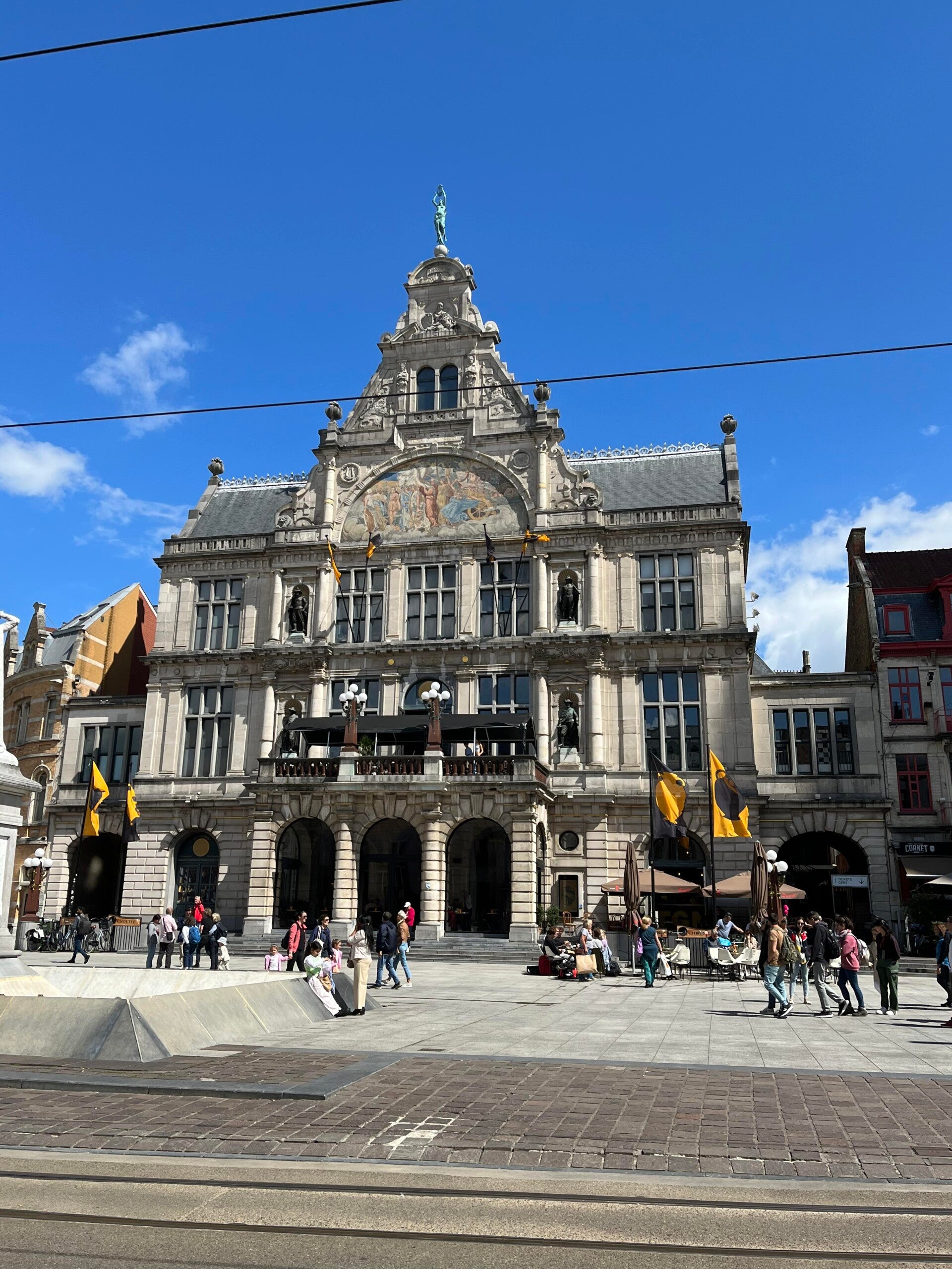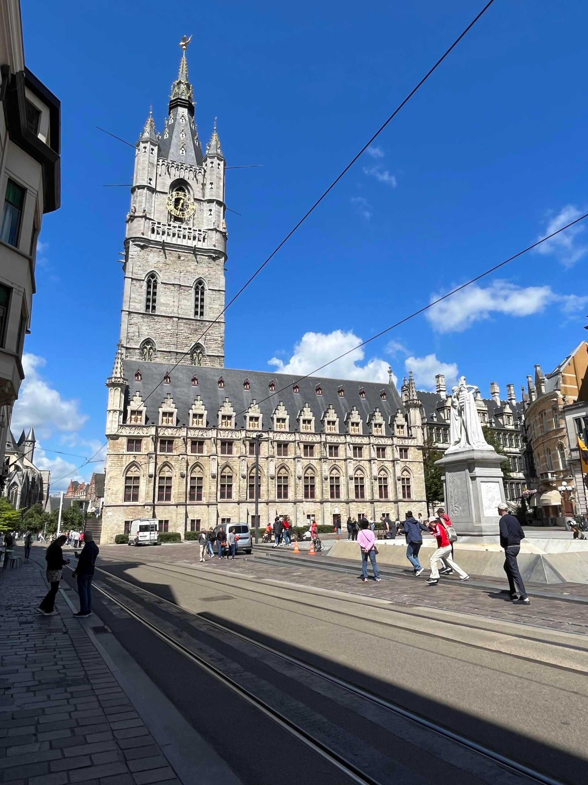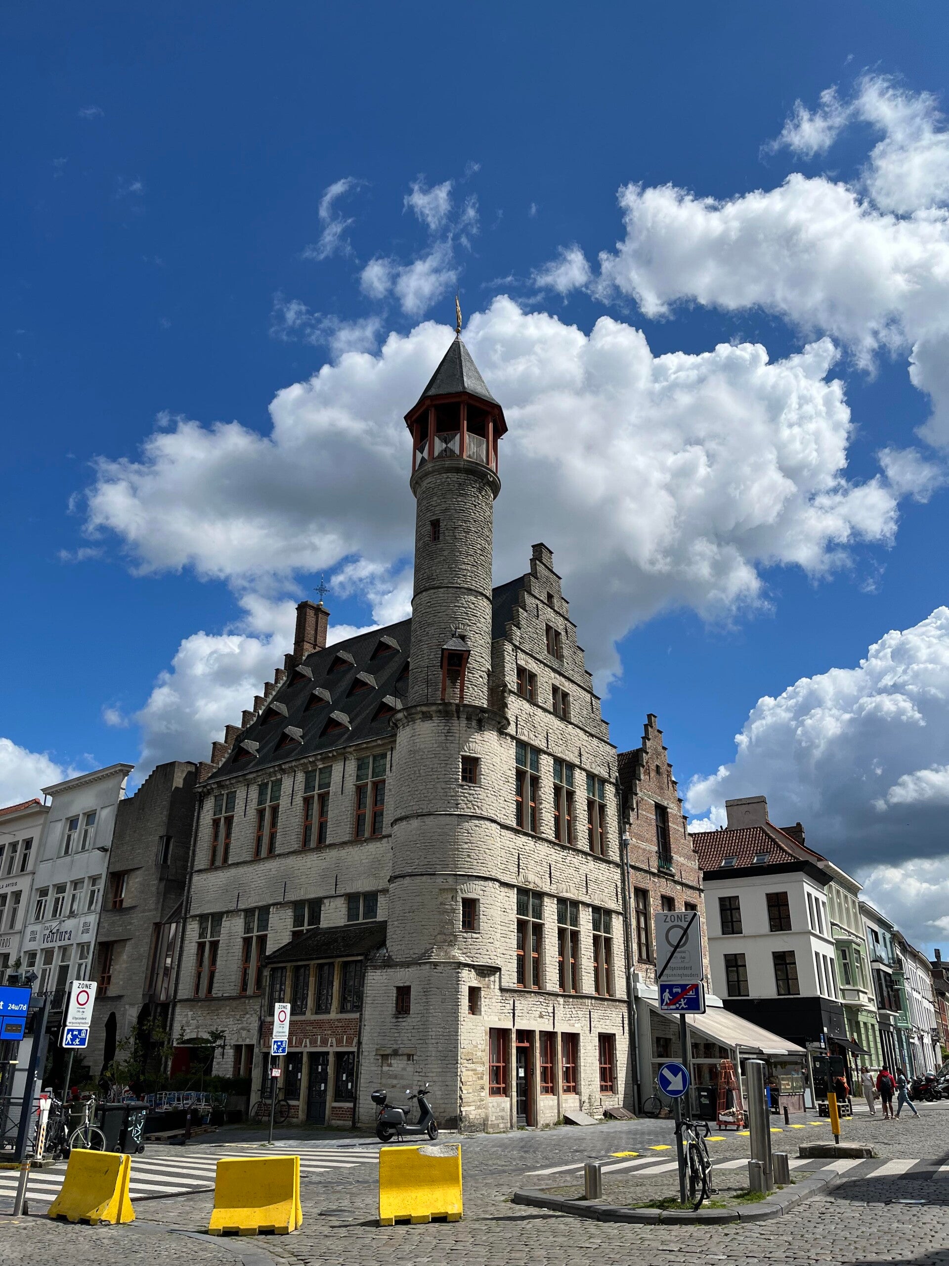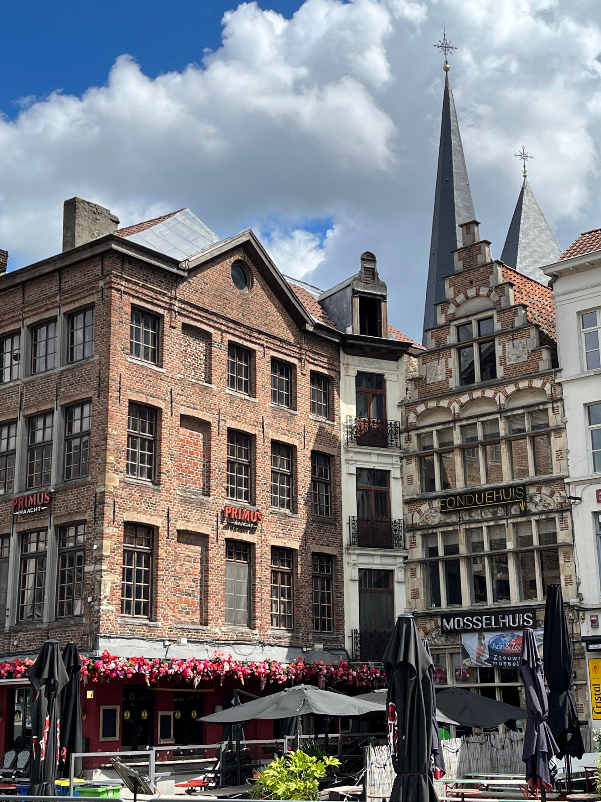 Na het ontbijt gaan we de stad in. We stappen weer op de tram en zijn er binnen een poep en een scheet. Gent is prachtig. Zoveel historische en middeleeuwse bouwwerken dat je ogen tekort komt. De terrassen zitten vol en de winkels zijn druk. Maar op een of andere manier voel ik hem niet. Ik mijmer waaraan dat kan liggen en besef me dat het niet "vloeit". Je loopt een winkelstraat in en aan het eind van de straat is het klaar. Geen winkels meer. Of alleen horeca of alleen huizen of historische gebouwen. Alsof je op een lekkere salsa aan het dansen bent en opeens hoor je opera. Maar het zouden ook zomaar mijn hormonen kunnen zijn, die kunnen de laatste tijd ook aardig tekeer gaan en mij van 'Lalalala' naar 'krijg de kolere' transformeren. Maar Arjan is het eigenlijk wel met mij eens, over de hormonen maar ook over de stad. Het is een mooie maar wat vreemde ervaring hier.