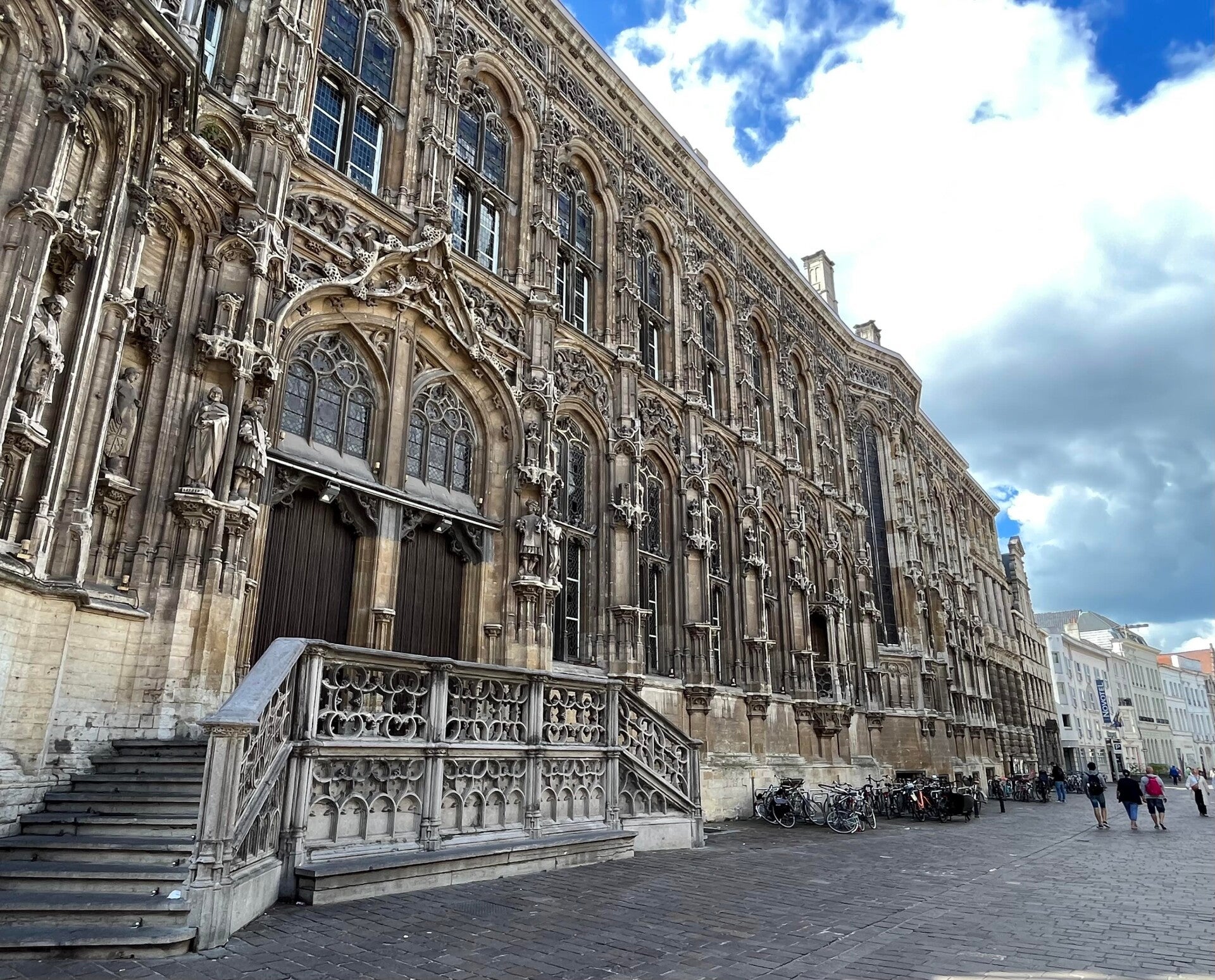 We gaan naar de Sint-Baafs kathedraal. Die is echt indrukwekkend hoor. De foto's spreken voor zich denk ik. We brengen een half uurtje door tussen het pracht en praal en lopen verder door Gent als er opeens een middeleeuws kasteel opdoemt. midden in de stad. Gravensteen heet de burcht. Onze nieuwsgierigheid is gewekt en we lopen er naar toe. Er staat een hele lange rij om naar binnen te komen maar daar hebben we even geen energie meer voor dus keren we om en bekijken we de buitenkant. De ene na de andere indrukwekkende verschijning komt tevoorschijn in de binnenstad. Eigenlijk zou je een gids moeten hebben om dit alles te begeleiden en om over te vertellen. Dat zou echt de moeite waard zijn, dus laat het een tip zijn als je naar Gent wil gaan.