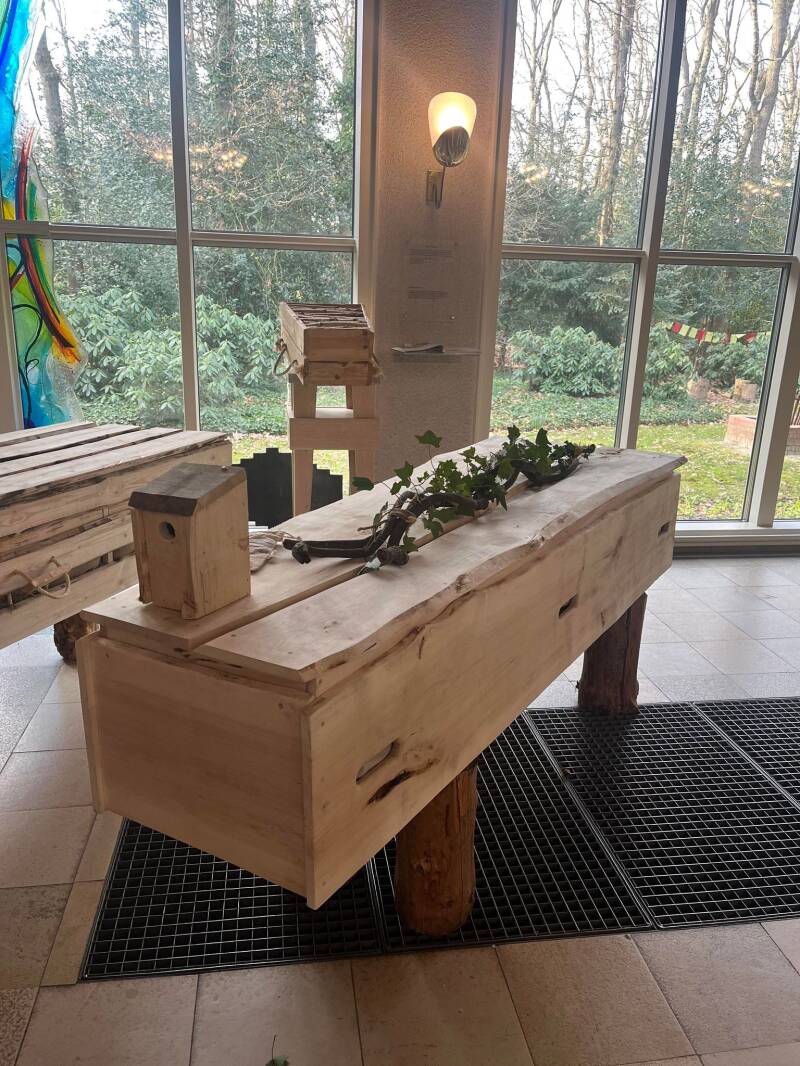 We hebben inmiddels de "omhullingen-dag" gehad. In de kistenfabriek heb ik het hele proces mogen aanschouwen van hoe een doodskist wordt geproduceerd. Duurzaam welteverstaan want de uitvaartwereld gaat zeker mee met de tijd. Een familiebedrijf, waar ouders de oprichters zijn en zoon met zijn vriendin volop en met enthousiasme innoveren en helemaal in deze tijd staan. Daarna zijn we terug naar de kerk gegaan, onze leslocatie, en daar waren inmiddels verschillende ondernemers gearriveerd die hun Omhullingen kwamen tonen. En dat was een prachtige belevenis.